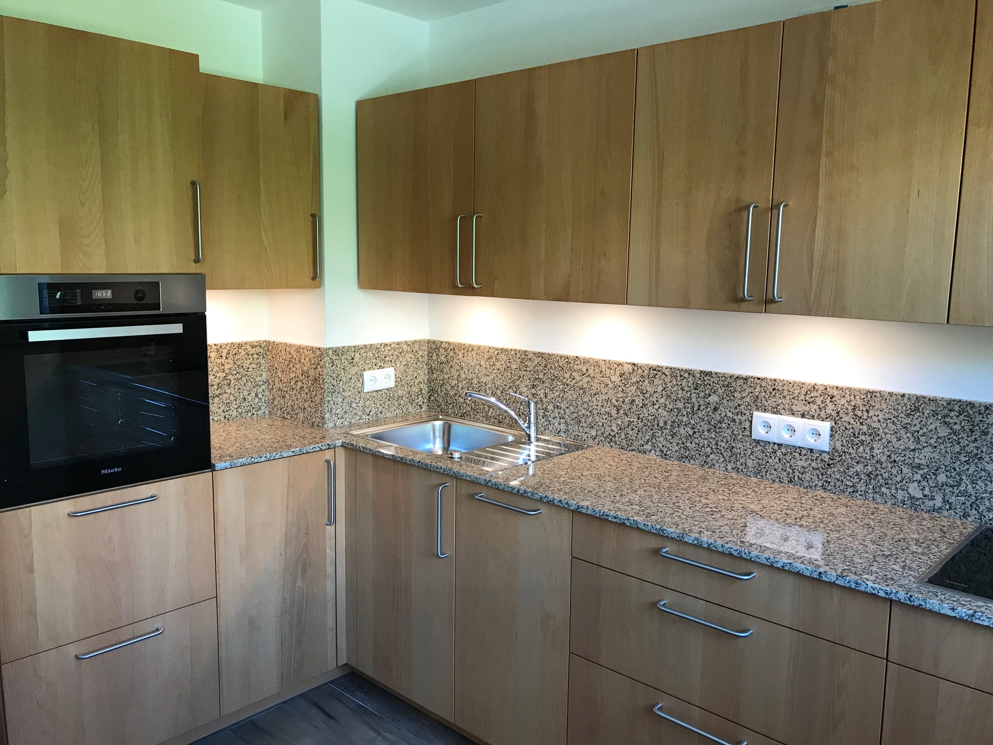 Kundenauftrag - Küche in massiver ruhiger Buche, Arbeitsplatte 2 cm Granit